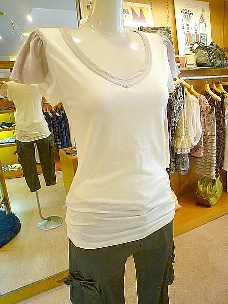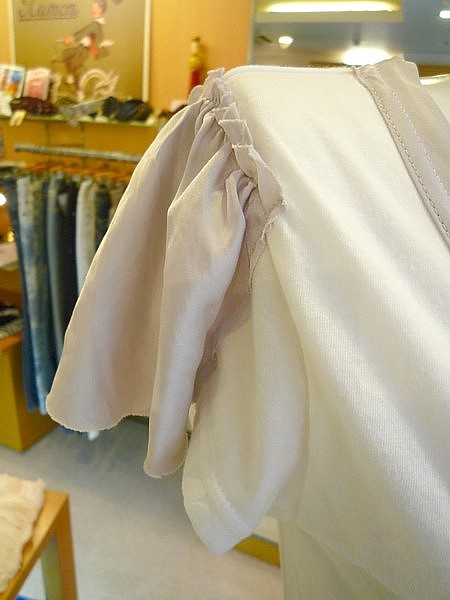 今年トレンドのタックスリーブのTシャツ。