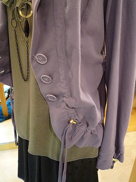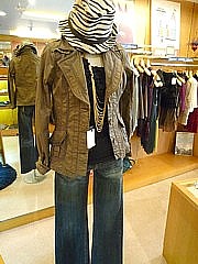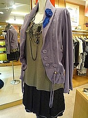 裏無しのジャケットは、これから寒い季節でも コート下に着られるので、まだまだ活躍します。 今回ご紹介のジャケットは、裾が絞れて、 形を変えられるので、ちょっとボレロ風にも 使えて便利です。 ジャージ生地のカジュアルなジャケットに、 よそ行きな雰囲気のラメ・キャミソールと ドット柄スカートを合わせて、アンバランスを 楽しんでみました![]()
