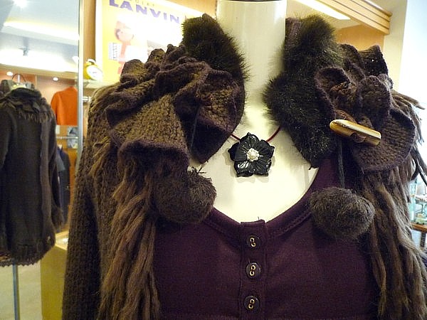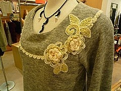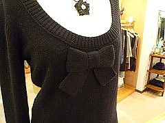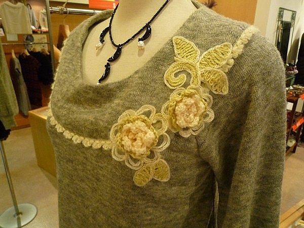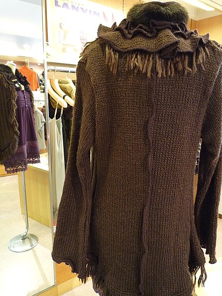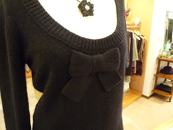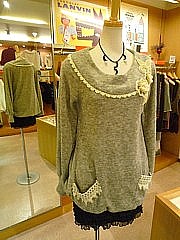 セーターはフランス製で、ふわふわの質感と胸についた