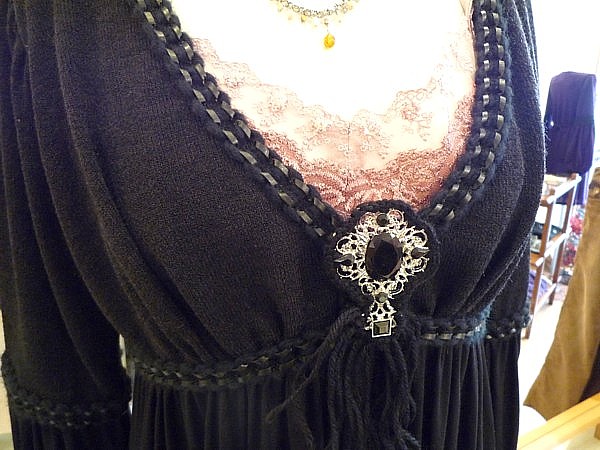 大きめな飾りボタンが、レトロな雰囲気をプラスして