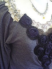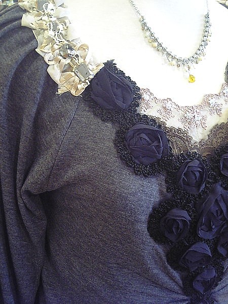 大ぶりのストーンや、胸元にたっぷりと付いたバラモチーフ、