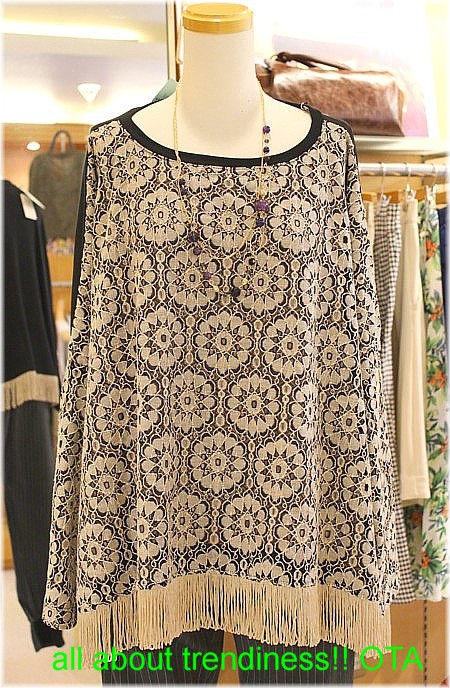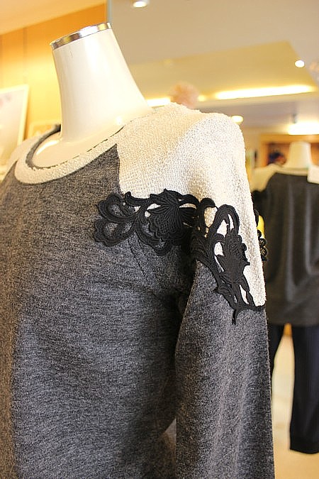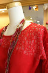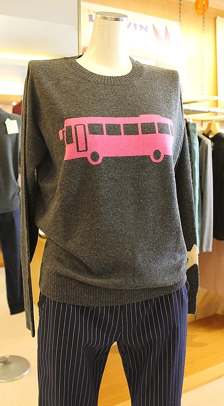 ◆写真左より赤ニット 15000円グレーカットソー 14000円バス柄ニット 14000円レース模様ニット 19800円