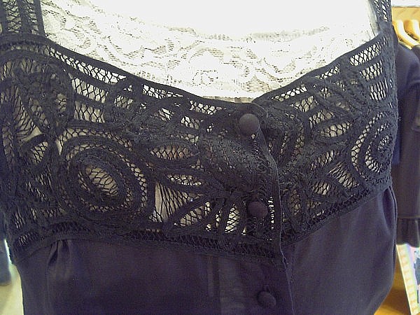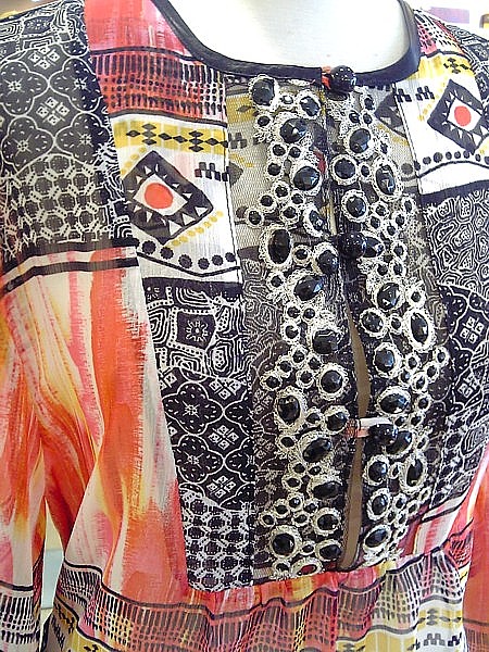 胸元の大小さまざまのビーズの回りを、ひとつずつシルバーの糸で、刺繍してあるんです!