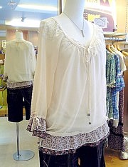 この写真の刺繍カットソーのシリーズで、袖ありのタイプを着ておられるのが出ていて、