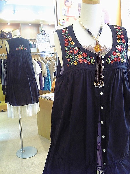 インには、ボヘミアンぽい刺繍入りのキャミ、