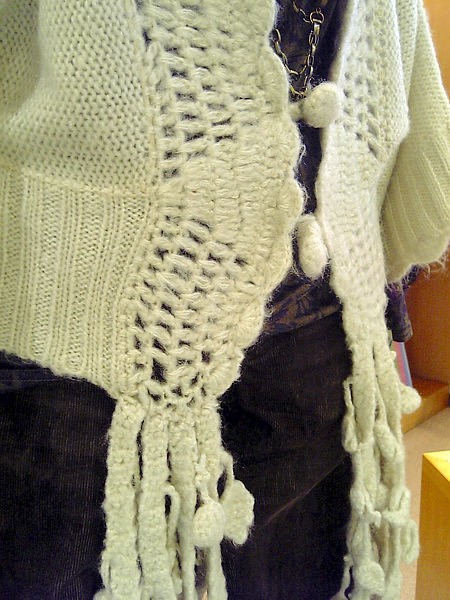 幅広な袖とじゃらじゃらと付いたモチーフがポイントです!ふわふわのモヘア具合もやさしい印象です。色違いで黒もありますよっ!