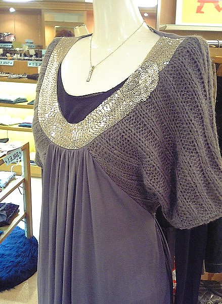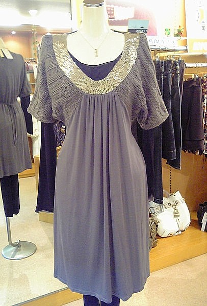 他にもシリーズで、同じようなスパンコールとローゲージニットの組み合わせチュニックが、何種類か入ってきています。が、かなりの人気の為、続々とお客様の下へお嫁入りしているので、気になられる方はお早めに~。