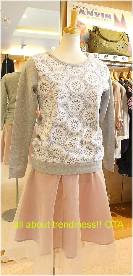 写真真ん中:カットソー6800円、チュールスカート6500円